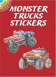 The 12 monster trucks in this full-color sticker collection come with authentic checkered flags, massive balloon tires, light bars, "spoilers," air rams or scoops, decorative decals, and other state-of-the-art equipment. Perfect for adding a dynamic touch to notebooks, lockers, and a host of other flat surfaces, these awe-inspiring racers will thrill monster truck fans of all ages. Dover Original. 12 full-color stickers on 4 plates.